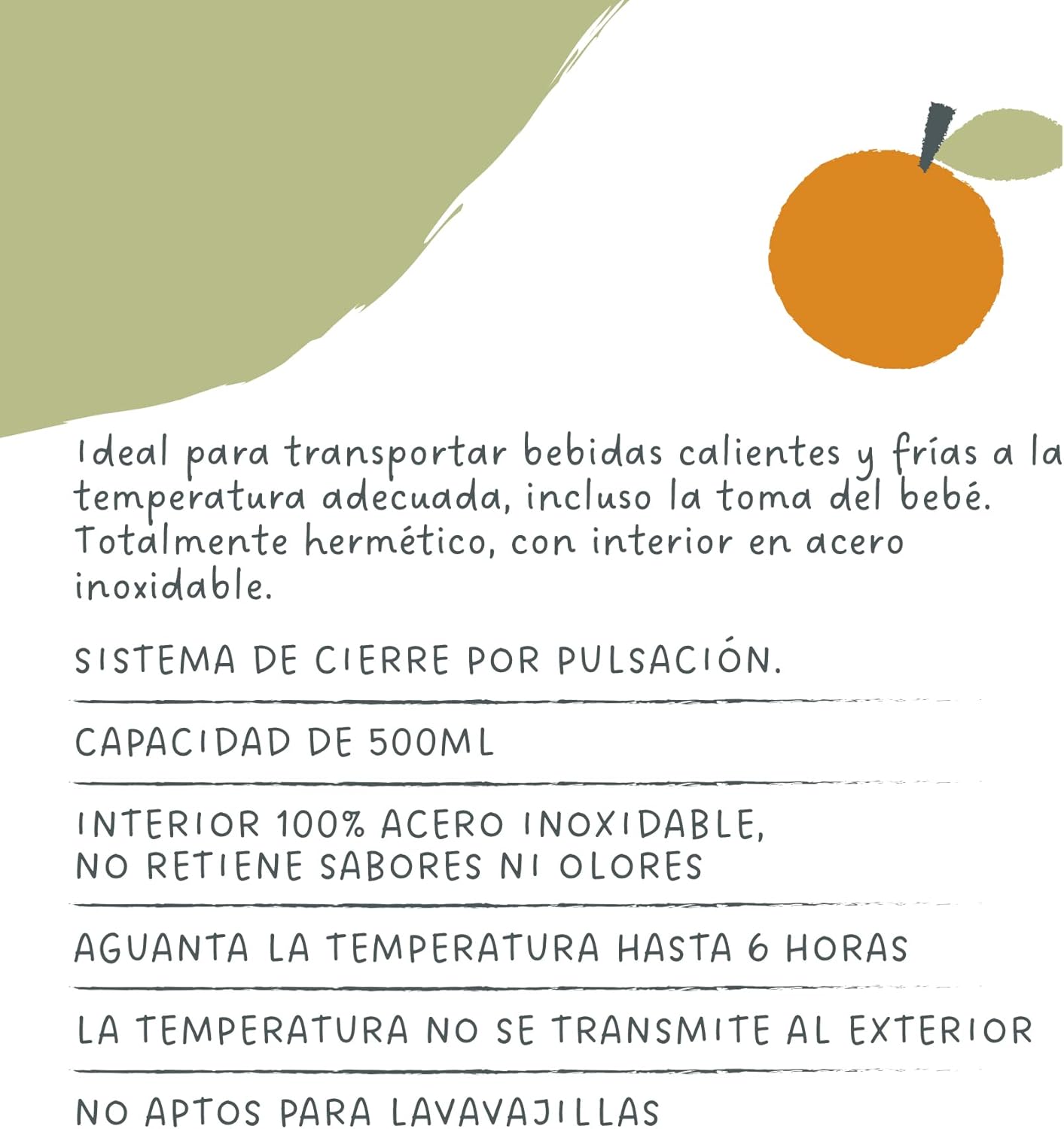 - AGUANTA LA TEMPERATURA hasta 6 horas. Permite transportar bebidas calientes y frías, manteniendo su temperatura