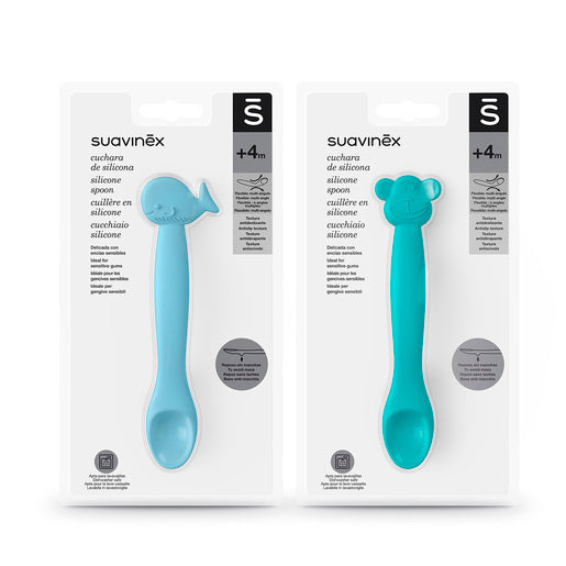 Pack de cucharas de silicona para bebés, flexible y de mango largo. Perfecta a partir de los 4 meses.