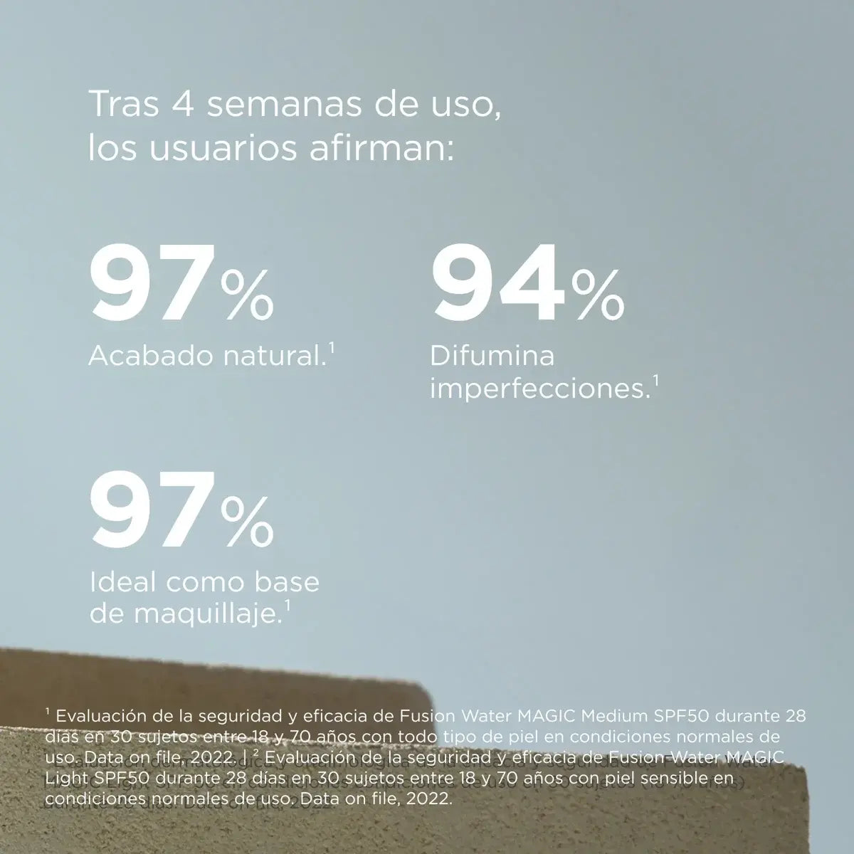 Cuida tu rostro con Fusion Water MAGIC Medium, el protector solar facial con color, acción antioxidante y protección Full Spectrum que protege frente a la radiación UVB/UVA, luz azul, IR-A y la polución. Hidrata la piel y aporta una cobertura natural que disimula imperfecciones y unifica el tono sin irritar los ojos.