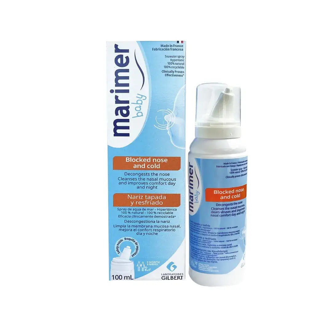 MARIMER Congestión Hipertónica Baby es una solución natural de agua de mar estéril y microdifundida, especialmente formulada para descongestionar suavemente las fosas nasales del bebé. Su acción osmótica favorece la eliminación del exceso de mucosidad, aliviando la congestión nasal causada por resfriados, rinitis o alergias. Ideal para uso diario en lactantes y niños pequeños.