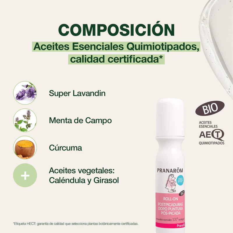 Este gel calmante, especialmente formulado para bebés, calma inmediatamente la piel irritada por insectos. Los aceites esenciales de lavandín, menta de campo y cúrcuma, así como el aceite vegetal de caléndula, suman sus virtudes calmantes, reduciendo el picor.